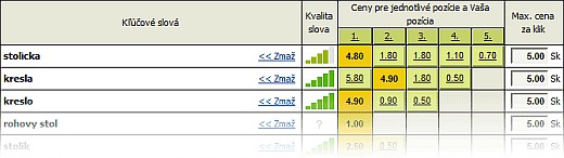 Max. cenu za klik si určujete sami (ukážka zo systému):